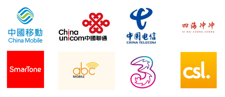 香港主要的通讯运营商包括中国移动香港CMHK、中国联通香港CUNIQ、香港电讯CSL、香港电讯ABC、香港电讯YOUR、数码通SMT以及和记3HK。