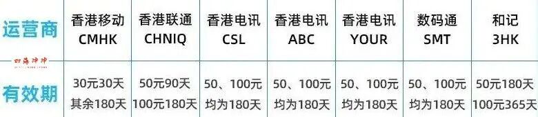 怎么办呢?香港手机卡有效期:一般为180天,充值话费是可以延长有效期的,充值不同的面值,根据运营商规定的不同,延长的有效期也是不同的,可参考下图
